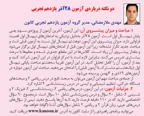 نکاتی درباره آزمون 28 آذر99