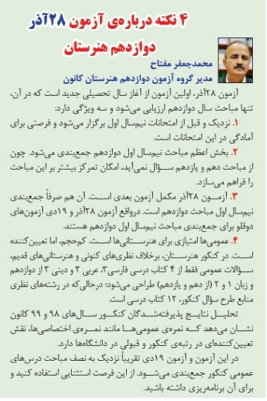 نکاتی در مورد آزمون 28 آذر دوازدهم هنرستان