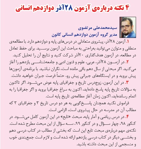 نکاتی در مورد آزمون 28 آذر دوازدهم انسانی