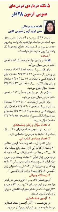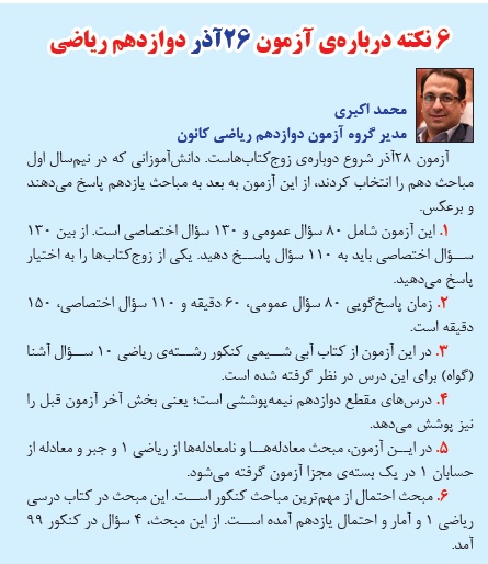 نکاتی در مورد آزمون 28 آذر دوازدهم ریاضی