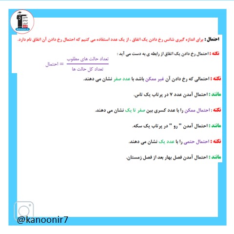 درسنامه فصل نهم ریاضی هفتم- ریاضی- نکات مهم - درسنامه ریاضی