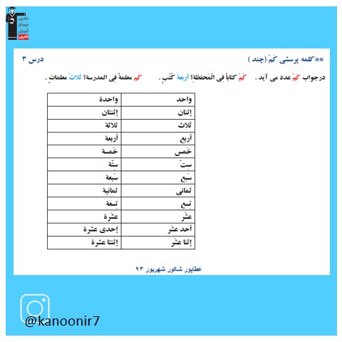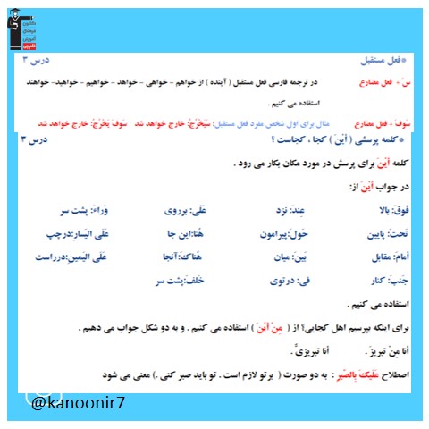 نکات مهم درس سوم عربی هفتم - نکات مهم - درسنامه عربی - عربی هفتم
