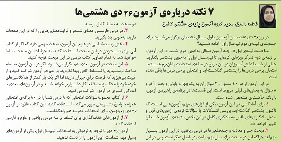 آزمون 26 دی با توجه به نزدیکی به امتحانات نیمسال اول یکی از مهمترین و موفقترین آزمونهای شماست. این آزمون را از دست ندهید.