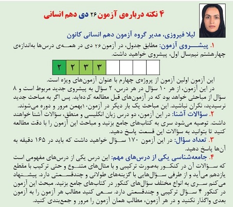 ۷ نکتة مهم دربارهی آزمون 26 دی دهم انسانی