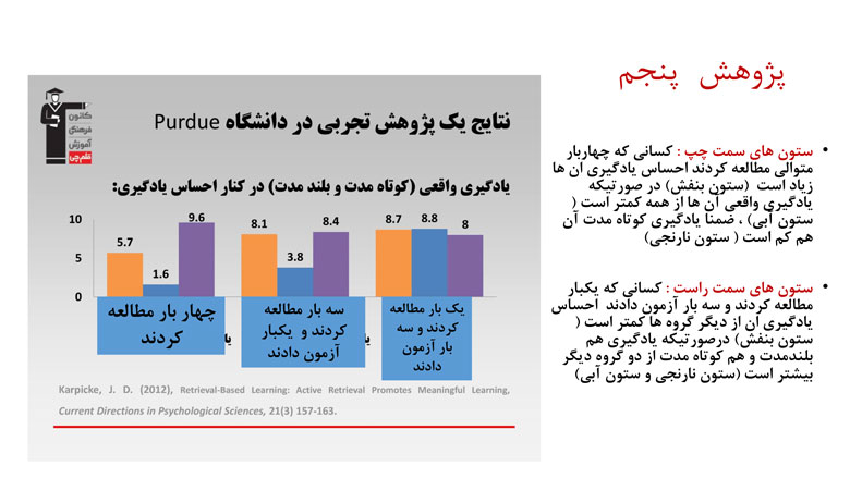 هرچقدر بیشتر آزمون می دهید و بازیابی می کنید یادگیری تان بیشتر می شود . وقتی آزمون می دهید چند اتفاق می افتد: