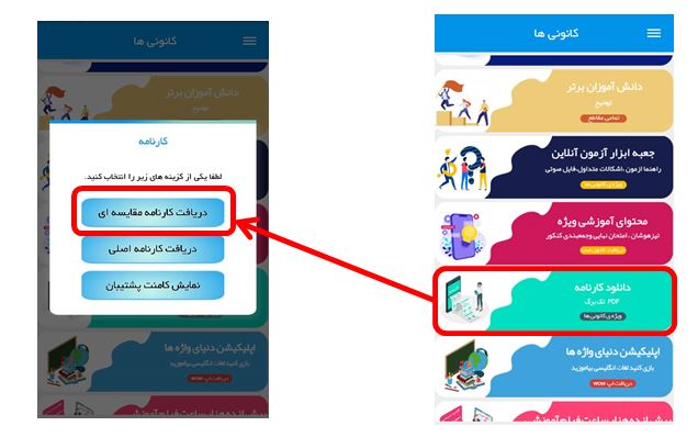 سپس از بخش دانلود کارنامه ، کارنامه مقایسه ای خود را دانلود کنید :