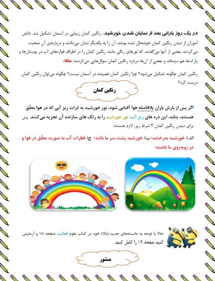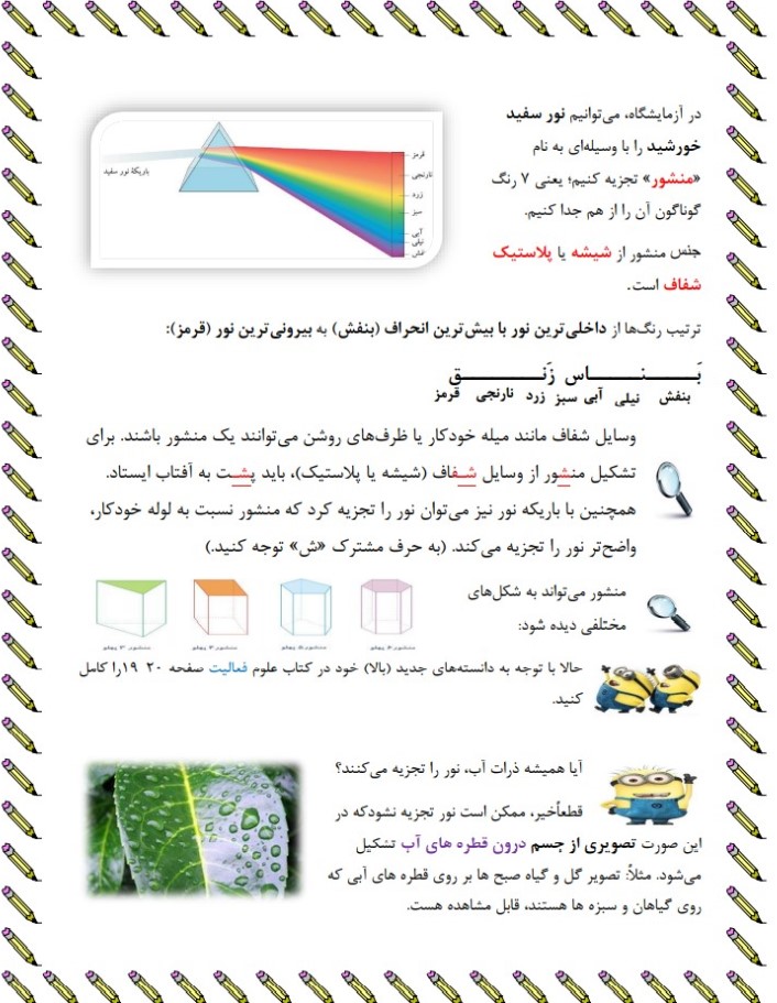 درسنامه درس سوم علوم پنجم دبستان (رنگین کمان)