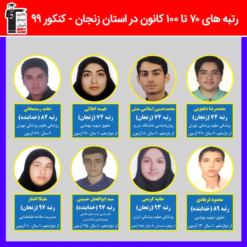رتبههای زیر 100 کانون در استان زنجان - کنکور 99