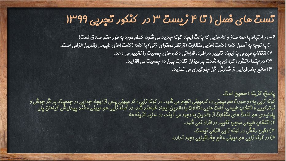سلام، خدا قوت! همه می دانیم که در درس زیست همیشه مطالب و نکاتی هست که توضیحات کتاب درسی پیرامون این مطالب کافی نیست و یا برداشت این نکات و مفاهیم از متن کتاب به راحتی ممکن نیست. چه روشی بهتر از پرسیدن؟ اینجا با استفاده از سوالاتی که شما دوستان عزیز پرسیدید به این مطالب می پردازیم؛ و قطعا با خواندن این مطلب، تسلط شما بر مطالب کتاب افزایش خواهد یافت و با دیگاه طراحان سوال در هر فصل بیشتر آشنا خواهید شد.