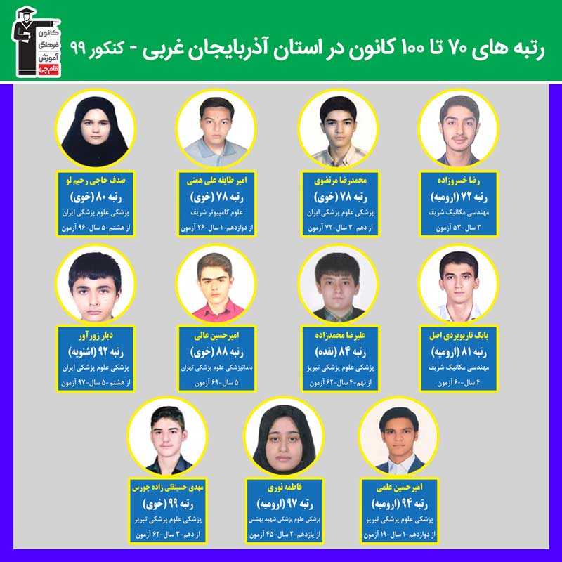رتبه های زیر 100 کانون در استان آذربایجان غربی - کنکور 99 را در ادامه مشاهده کنید...