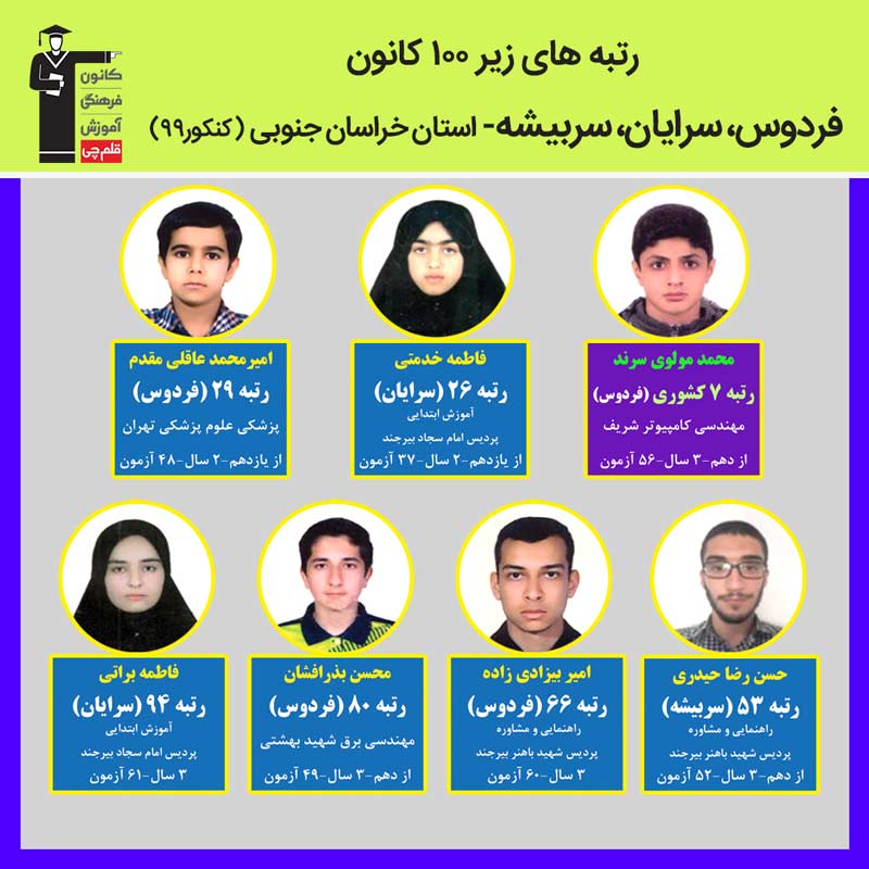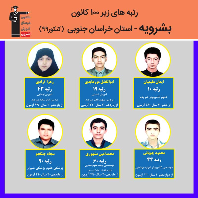 رتبههای زیر 100 کانون در استان خراسان جنوبی - کنکور 99