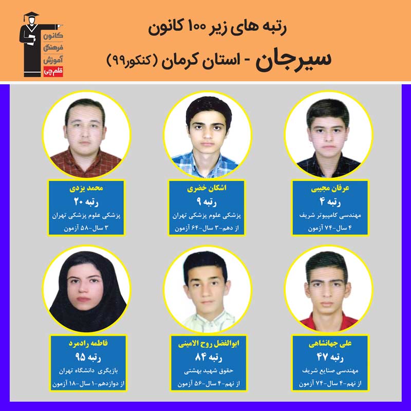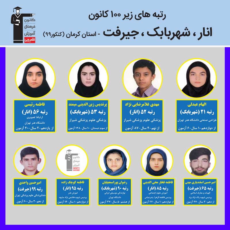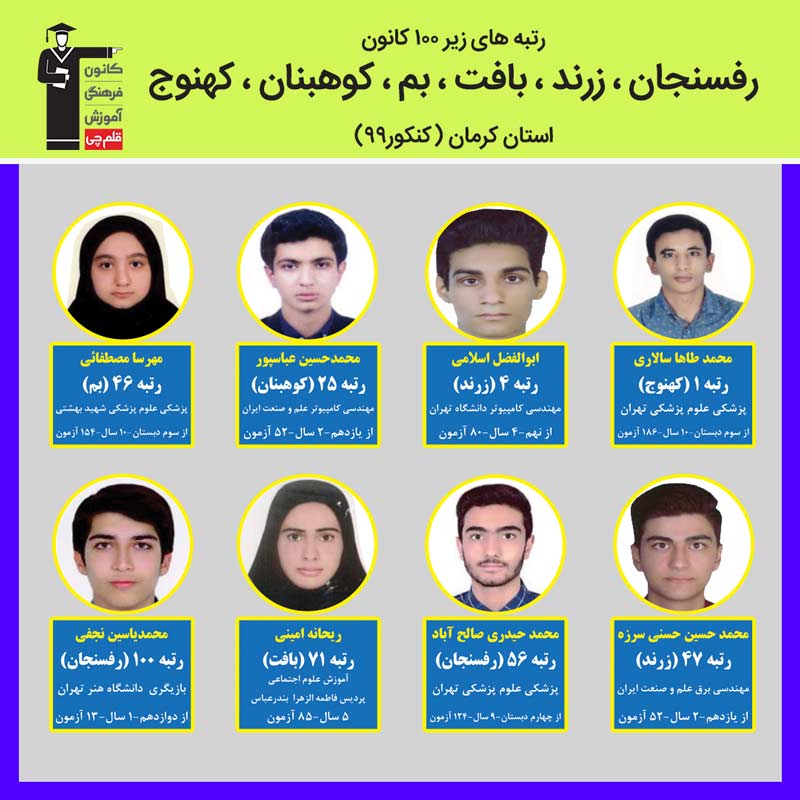 رتبه های زیر 100 کانون در استان کرمان - کنکور 99 را در ادامه مشاهده کنید...