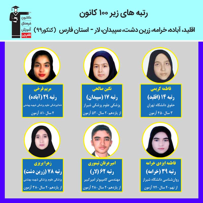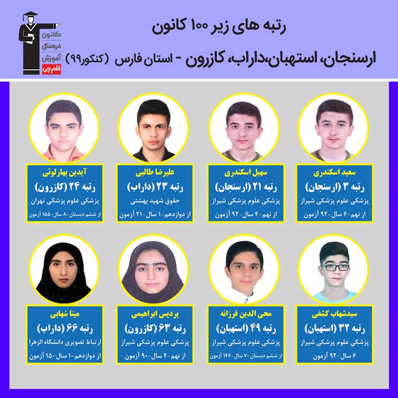 رتبه های زیر 100 کانون در استان فارس - کنکور 99 را در ادامه مشاهده کنید..