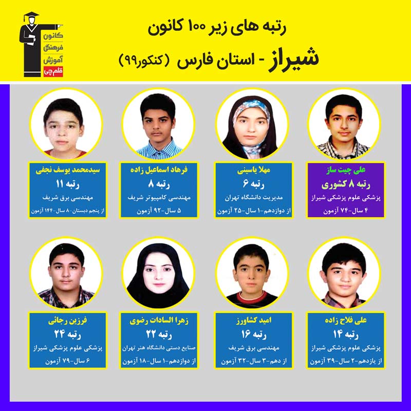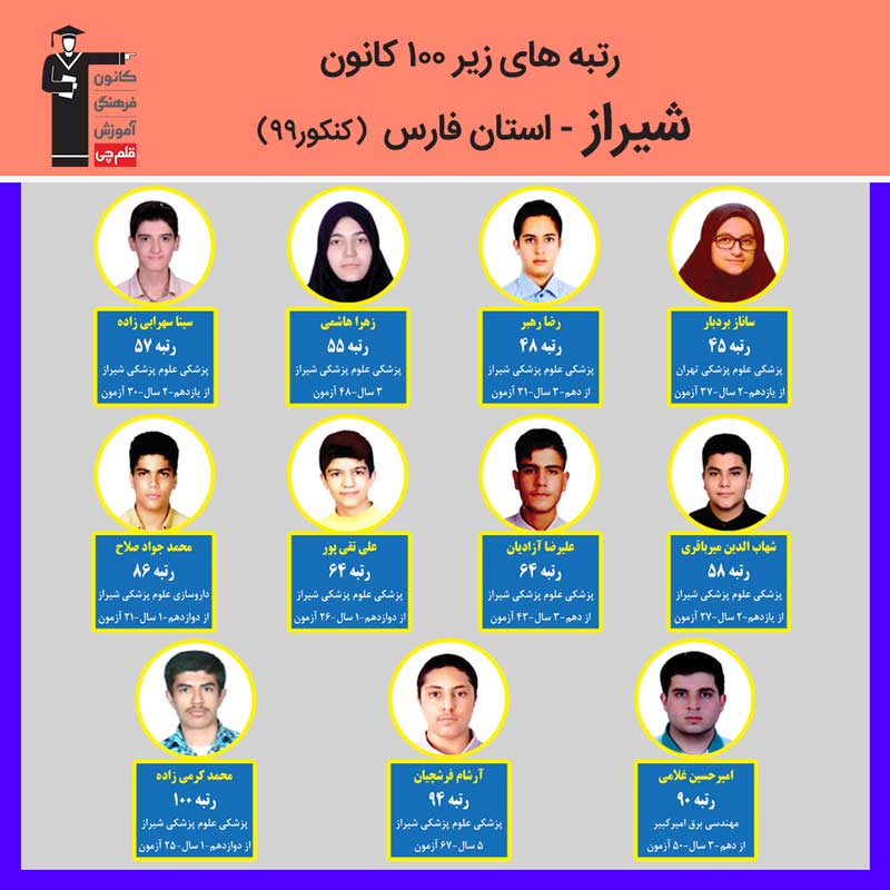 رتبههای زیر 100 کانون در استان فارس - کنکور 99
