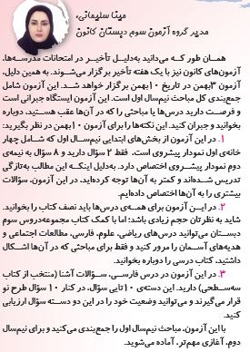 نکاتی در مورد آزمون 10 بهمن سوم دبستان