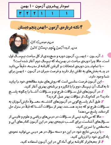 نکاتی در مورد آزمون 10 بهمن پنجم دبستان