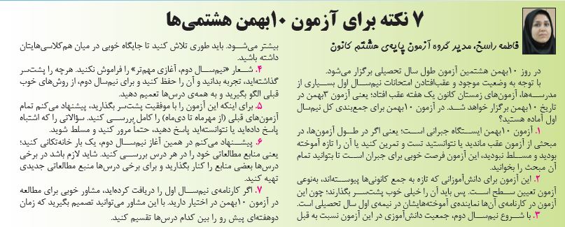 نکاتی در مورد آزمون 10 بهمن پایه هشتم