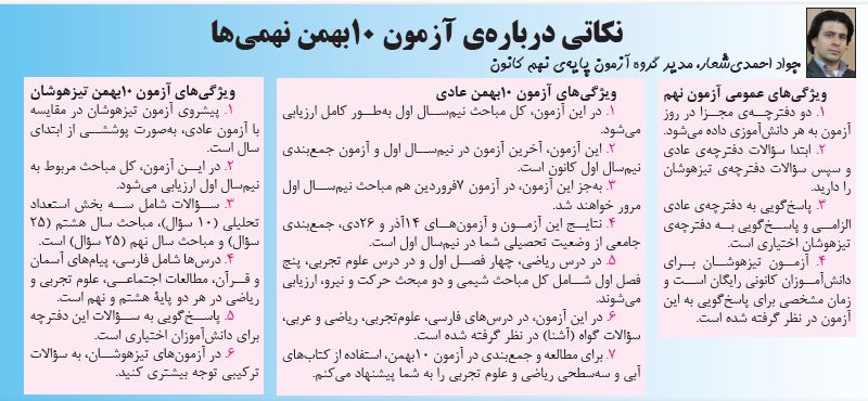 نکاتی درباره آزمون 10 بهمن 99