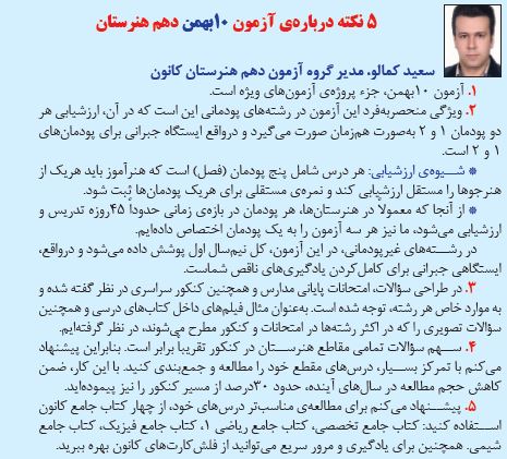 نکاتی در مورد آزمون 10 بهمن پایه دهم هنرستان