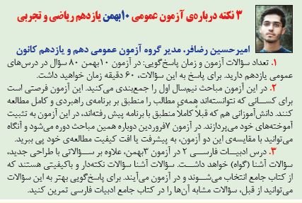 نکاتی در مورد آزمون 10 بهمن پایه یازدهم عمومی