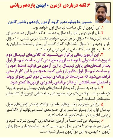 نکاتی در مورد آزمون 10 بهمن پایه یازدهم ریاضی