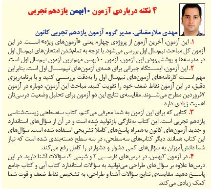 نکاتی در مورد آزمون 10 بهمن پایه یازدهم تجربی