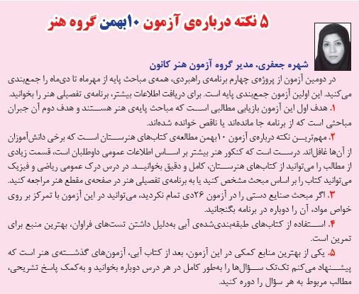 نکاتی در مورد آزمون 10 بهمن گروه هنر