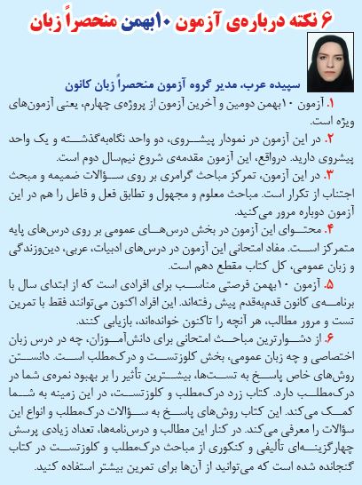 نکاتی در مورد آزمون 10 بهمن گروه منحصراً زبان
