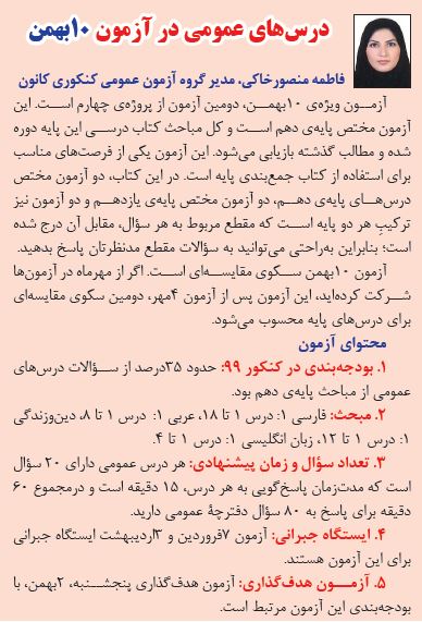 نکاتی در مورد آزمون 10 بهمن دوازدهم عمومی
