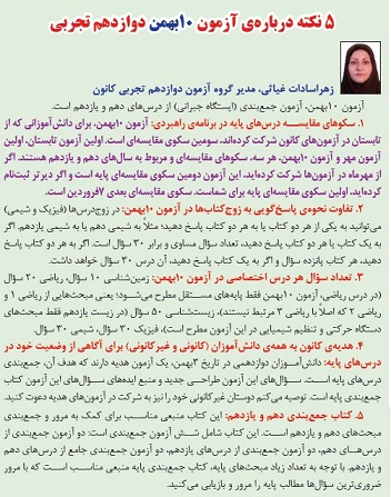 نکاتی در مورد آزمون 10 بهمن دوازدهم تجربی