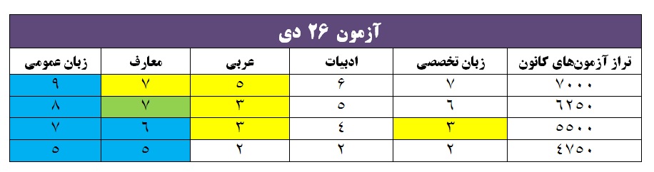 آزمون 26 دی منحصرا زبان - تراز 7000