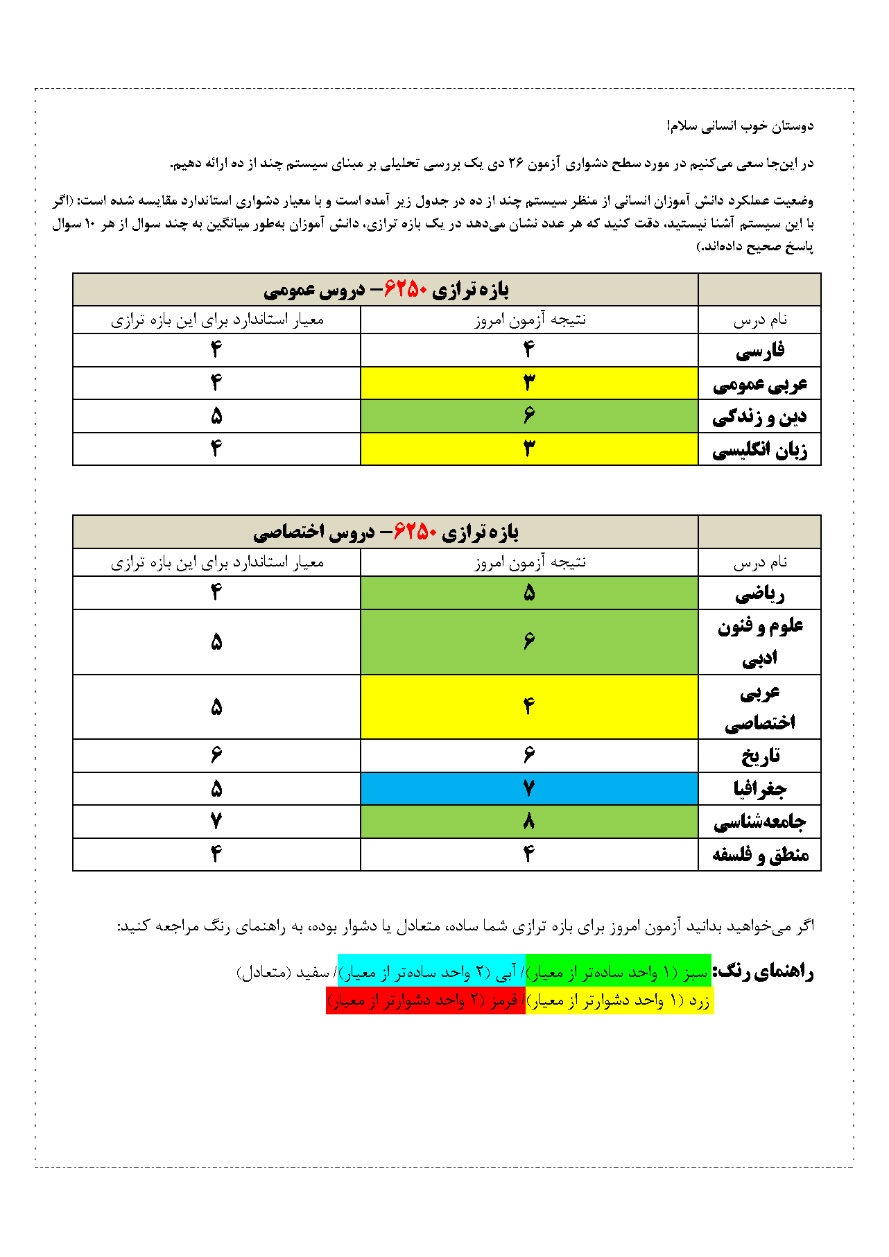 بازه ترازی 6250: سطح دشواری آزمون 26 دی دوازدهم انسانی
