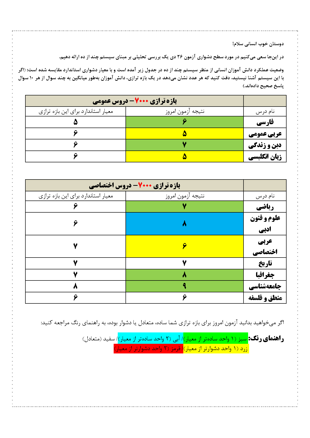بازه ترازی 7000: سطح دشواری آزمون 26 دی دوازدهم انسانی