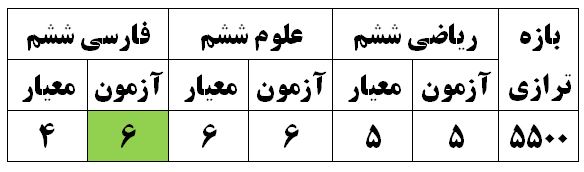 مطابق جدول بالا سطح دشواری آزمون امروز برای بازه ی ترازی 5500 در درس های ریاضی و علوم منطبق با معیار و در درس فارسی دو واحد ساده تر از معیار بوده است.