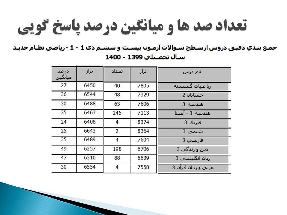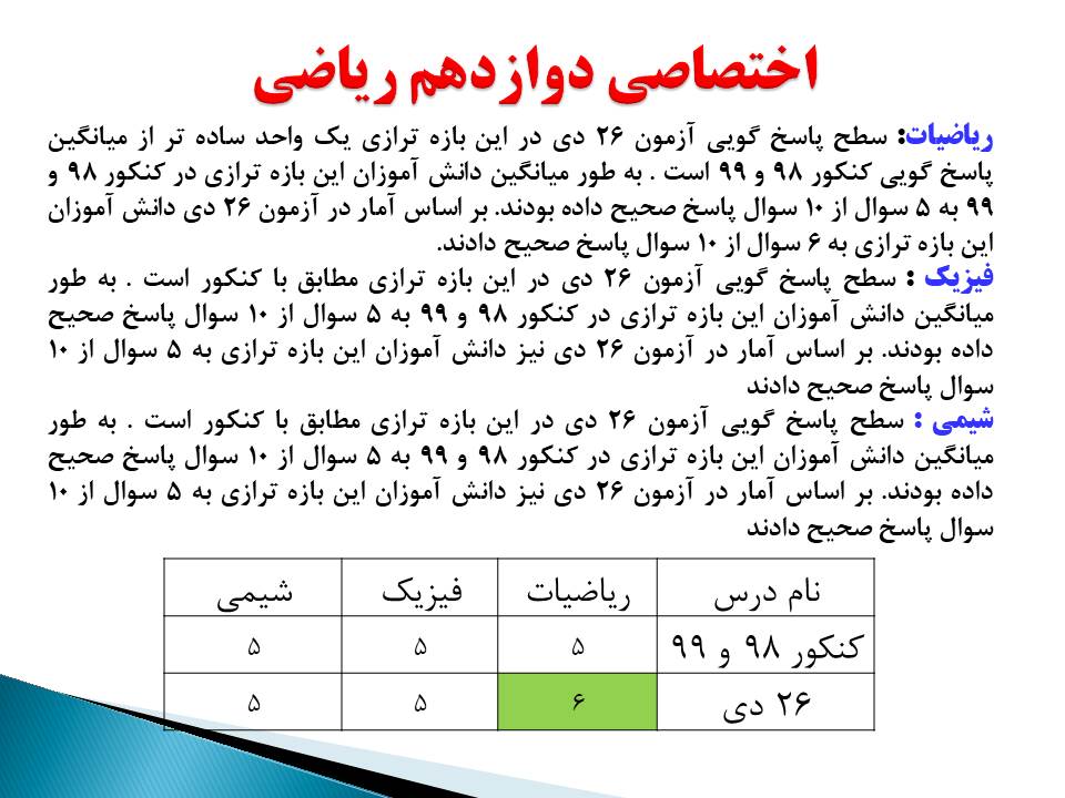 سطح پاسخ گویی وصدها آزمون 26 دی دوازدهم ریاضی- بازه تراز 6250