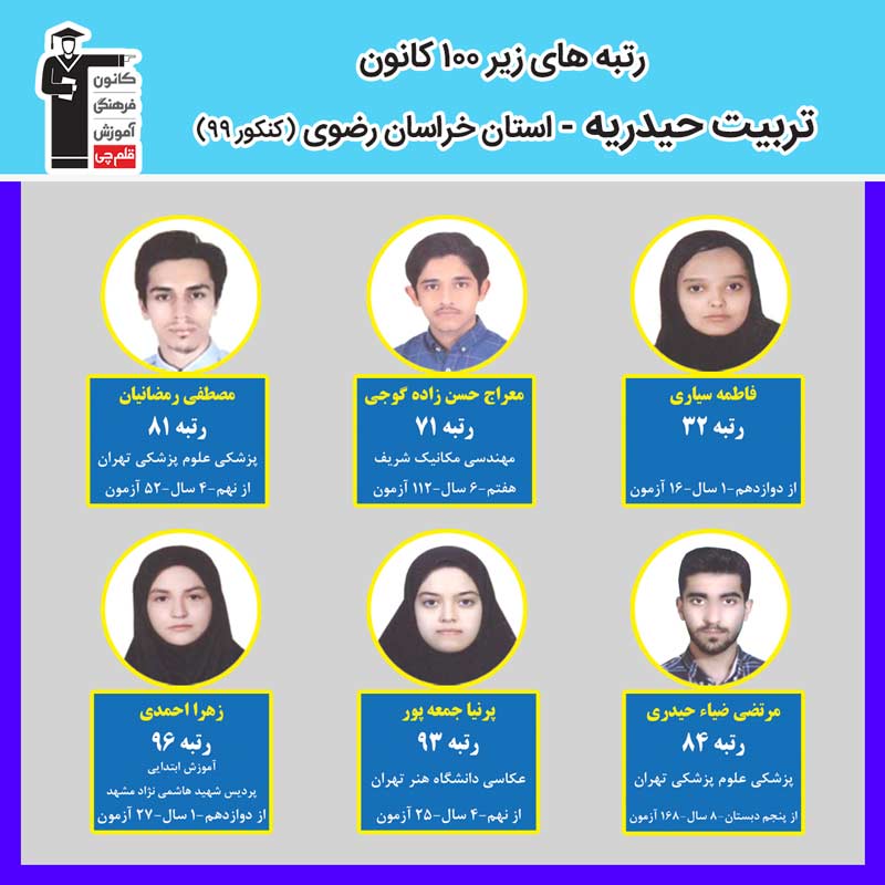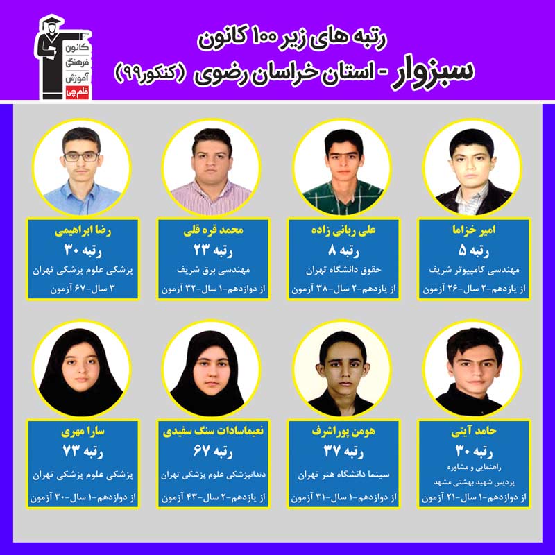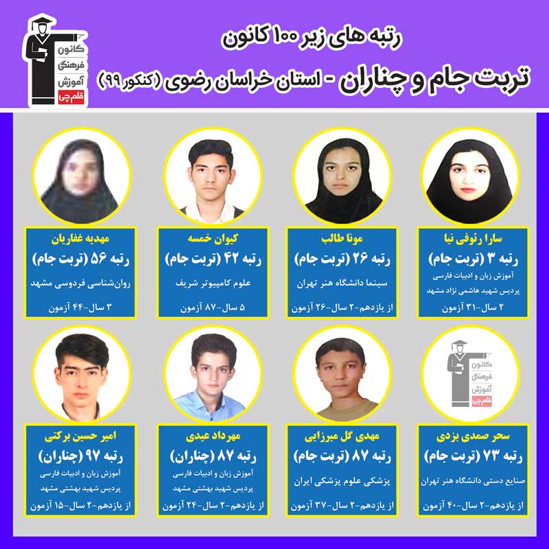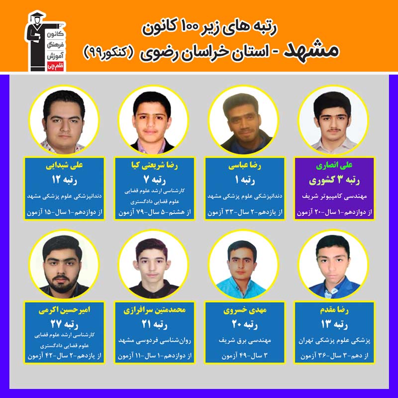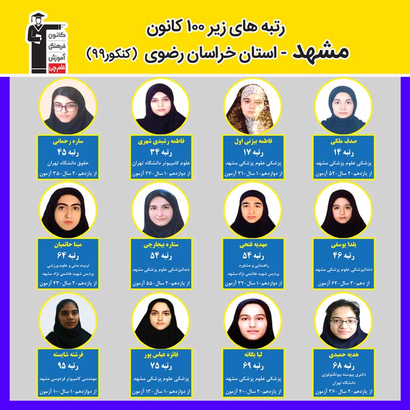 رتبه های زیر 100 کانون در استان خراسان رضوی - کنکور 99 را در ادامه مشاهده کنید...