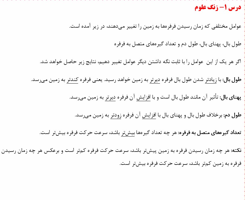 درسنامه درس اول علوم پنجم دبستان(زنگ علوم)