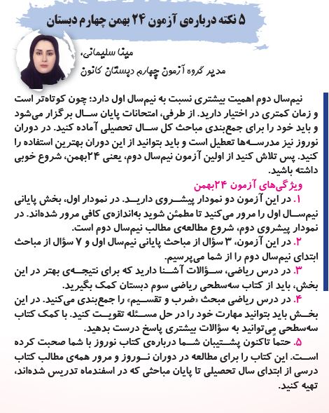 نکاتی در مورد آزمون 24 بهمن چهارم دبستان