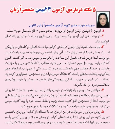 نکاتی در مورد آزمون 24 بهمن گروه منحصراً زبان