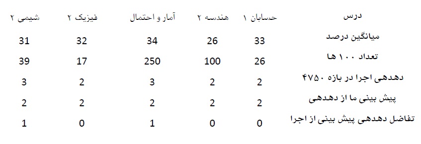 در این قسمت، بعد از برگزاری هر آزمون در مورد سطح دشواری آن به شما گزارش میدهیم و آن را با پیش‌بینی خودمان مقایسه میکنیم. جدول زیر بخوبی بیانگر این موضوع است.