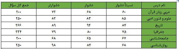 شامل درسهای: عربی ـ علوم و فنون ادبی ـ تاریخ ـ جغرافیا ـ جامعهشناسی ـ روانشناسی میباشد.