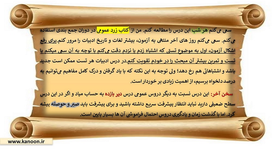 (همچنین میتوانید روش مطالعه خود را، مربوط به درس ادبیات، با دوستانتان به اشتراک بگذارید.)