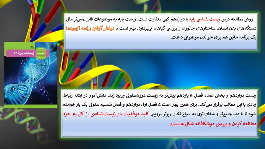 در این مطلب دو نفر از دانش آموزان برتر امسال، روش مطالعه خود (کلکسیون روش مطالعه) را در درس زیست با شما به اشتراک گذاشته اند.