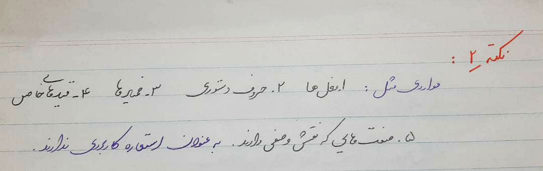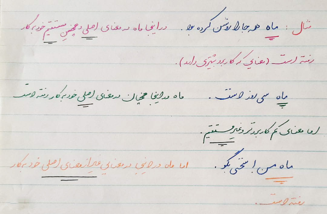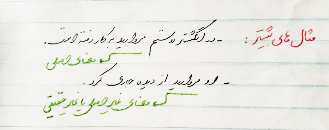 مثال هایی از کاربرد کلمات در معناهای اصلی و غیر اصلی :
