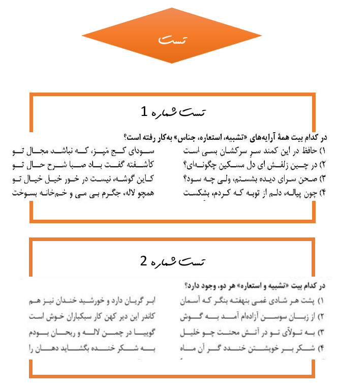 نگاهی مختصر بر استعاره داشتیم و اکنون زمان این است که مطالب گفته شده را با چند تست تثبیت کنیم: