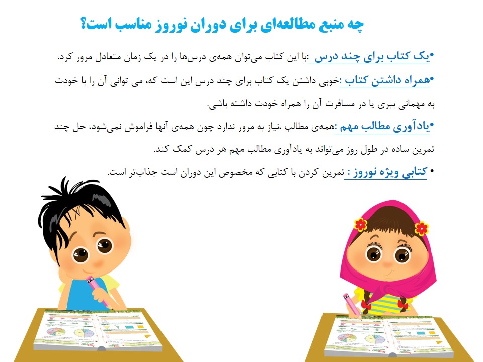 بهترین کتاب برای دوران نوروز برای دانش اموزانی که میخواهند هم به بازی و تفریح بپردازند و هم درسها را فراموش نکنند.
