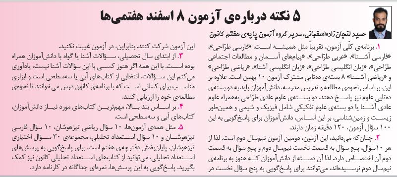 نکاتی در مورد آزمون 8 اسفند پایه هفتم را مشاهده نمایید.