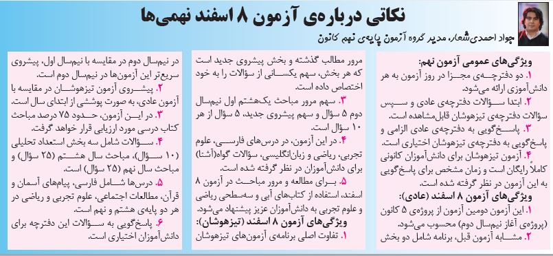 نکاتی در مورد آزمون 8 اسفند پایه نهم