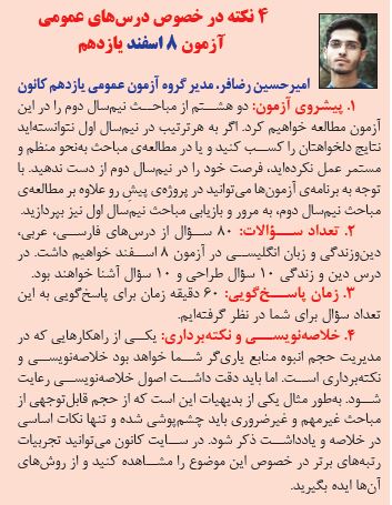 نکاتی در مورد آزمون 8 اسفند یازدهم عمومی