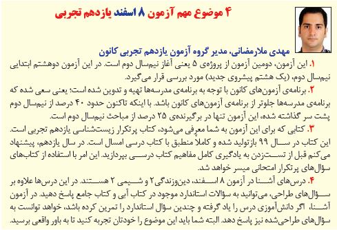 نکاتی در مورد آزمون 8 اسفند یازدهم تجربی